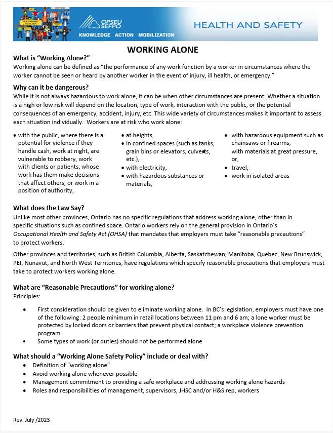 This guide explains the risks of working alone. It also outlines steps employers and workers can take to stay safe. This applies when employees work without direct supervision or immediate help.