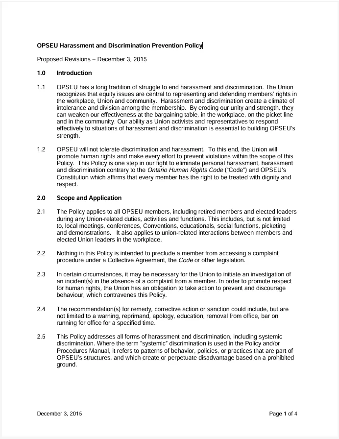 Our ability as Union activists and representatives to respond effectively to situations of harassment and discrimination is essential to building OPSEU/SEFPO’s strength.